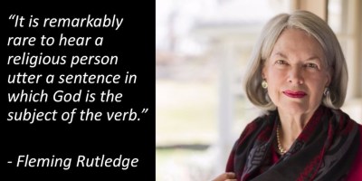 “When I have taught homiletics (preaching),” writes Fleming Rutledge, “I have always put a lot of emphasis on subjects and verbs. It’s remarkable how infrequently many of today’s preachers make God the subject of active verbs. Usually it’s the human being who is given the verbs.” [note]If you have not read everything Fleming Rutledge has ever written, your life is incomplete.[/note]