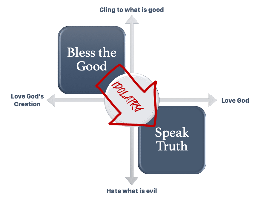 Be slow to see this as a prophetic word delivered from people who call themselves Christians to people who do not. We should try to unmask the idols of our secular world and point it to God (again, gently where possible). But much of the truth we speak will be to others who already call themselves Christians. In fact, the first and most consistent truth we seek should be for ourselves. Most of us carry on with low-grade idolatries, unaware of just how much we are influenced by them. We would be better to recognize them for what they are, let the good things be merely goods, and let God be God.