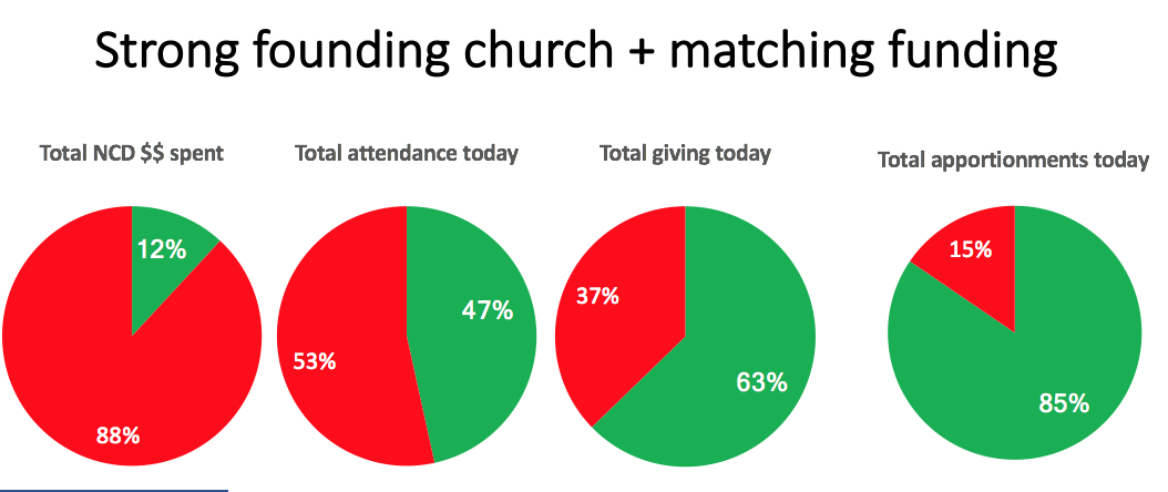 I think what we’re seeing here is that with more disproportionate denominational investment, new churches become dependent on that funding. They are unable to mature into churches that can become self-sustaining.
